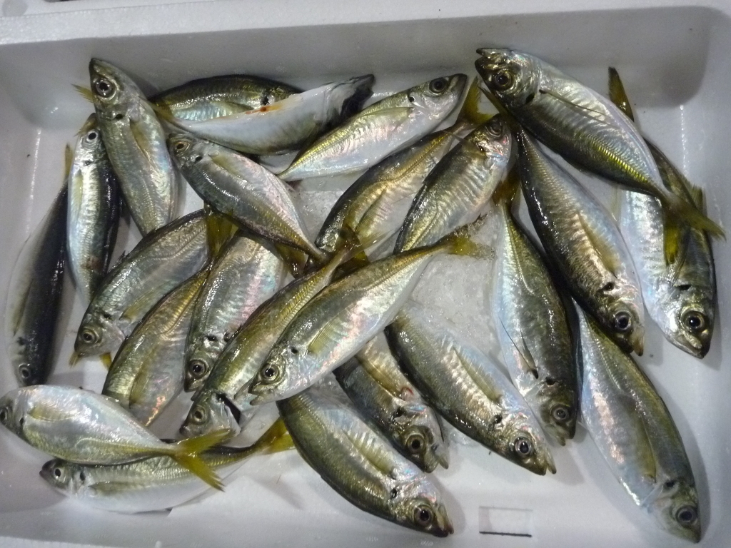 主なものは、小エビ、マダコを中心にマダイ、チヌ、ゲタ、メイタ、小アジ、キス、コチゴ、カマス、