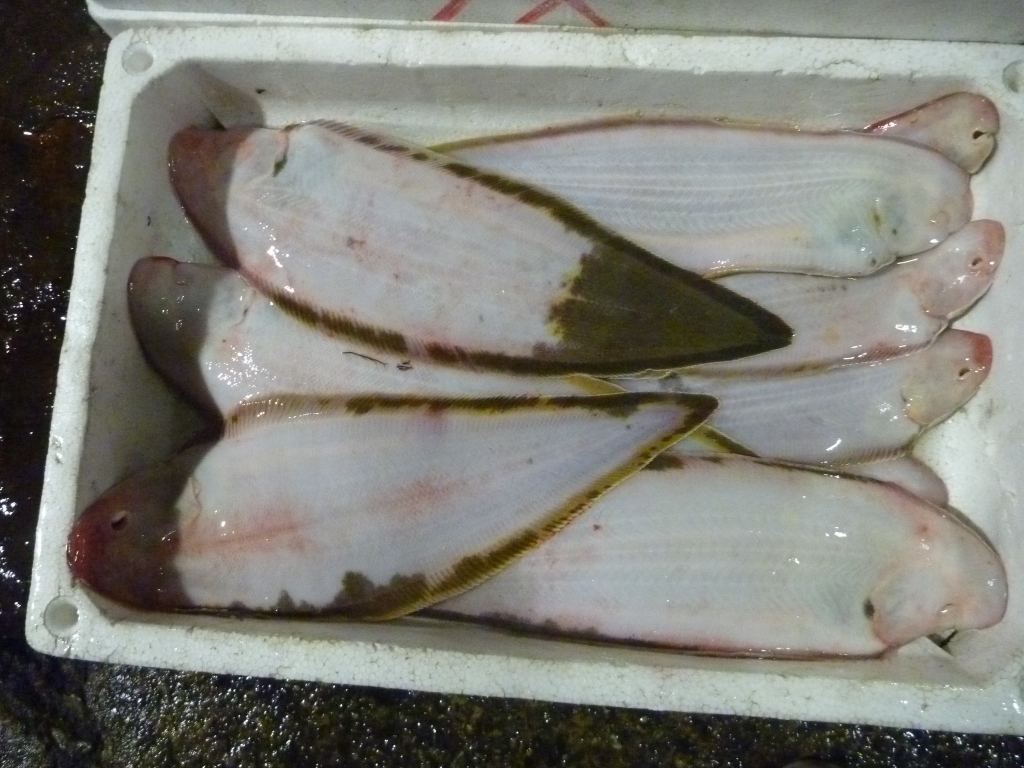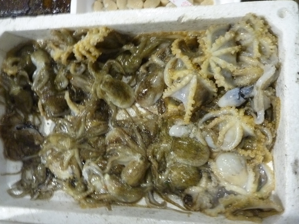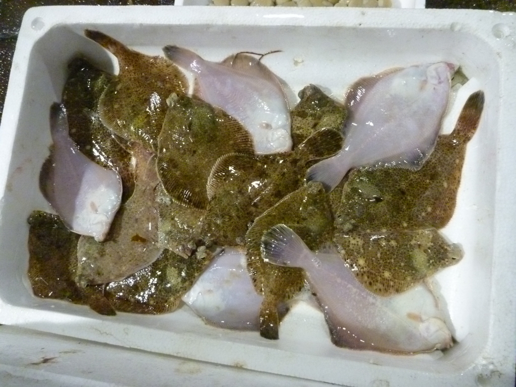 市場に出ている魚は、メイタ、ゲタ、ヒラメ、キス、イイダコ、ベイカ、タチガイ、
