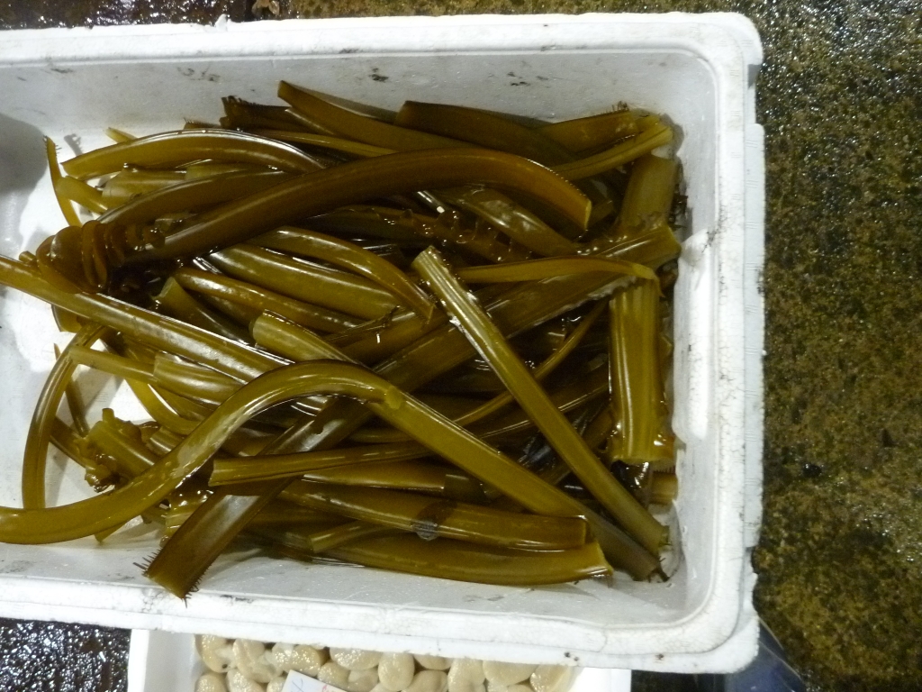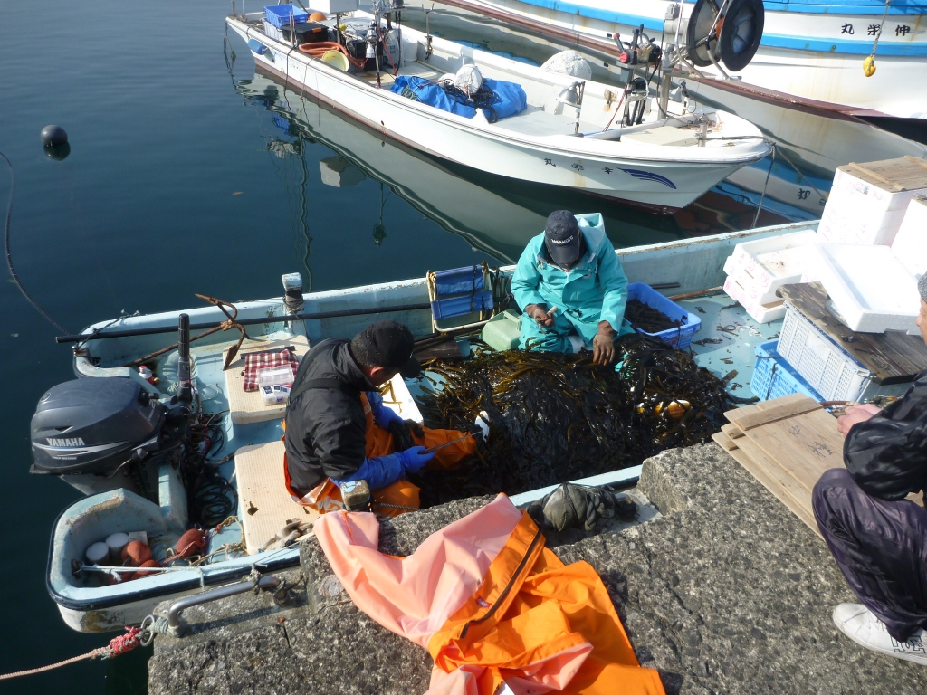 庵治の漁港内で、養殖ワカメの出荷作業風景に出合わしたら、声をかけてみてください。