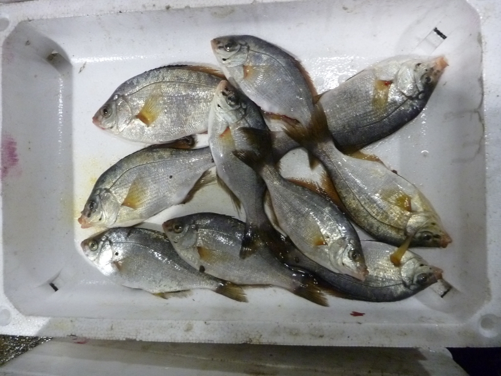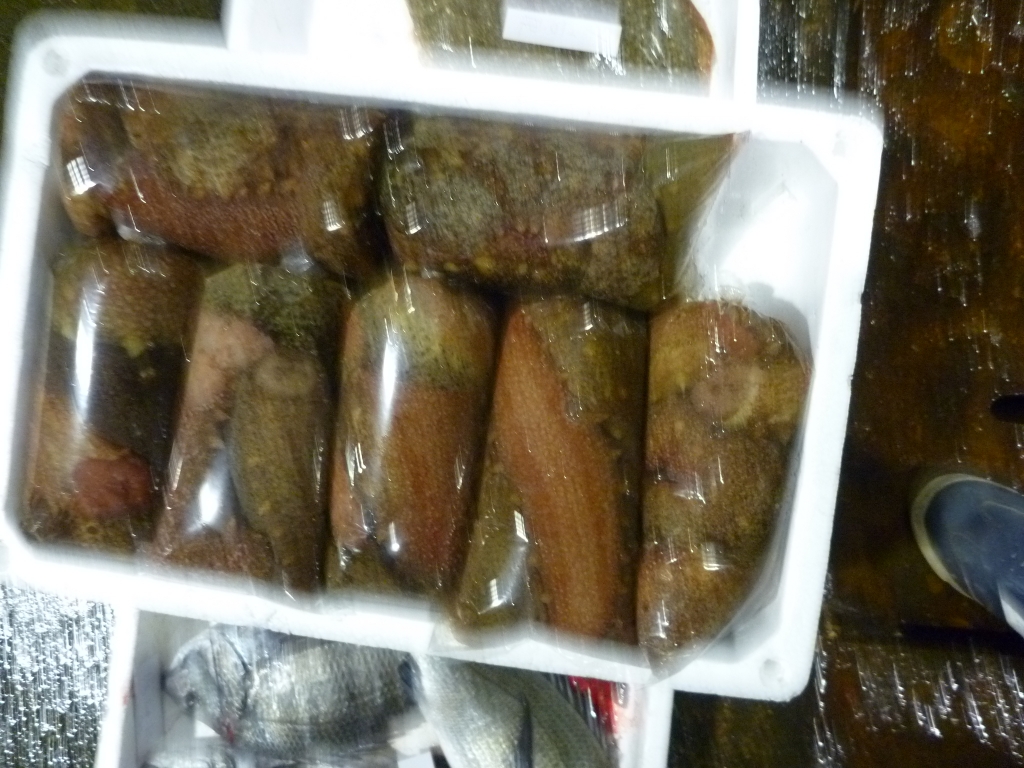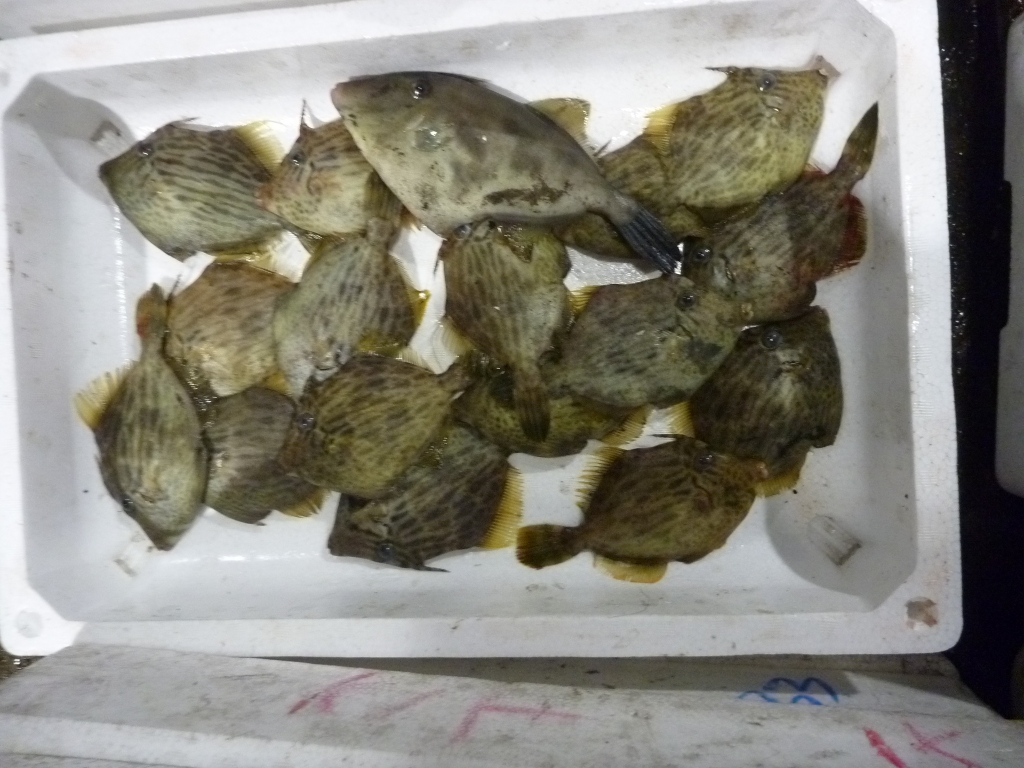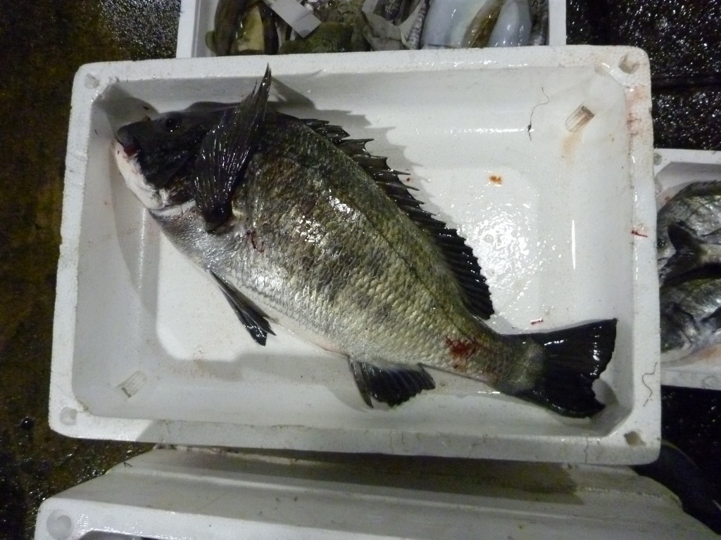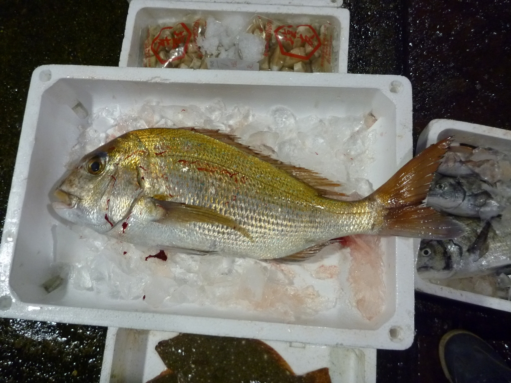 今朝の市場に出ている主な魚は、マダイ、チヌ、ヒラメ、ハネ、メイタ、ゲタ、メバル類、