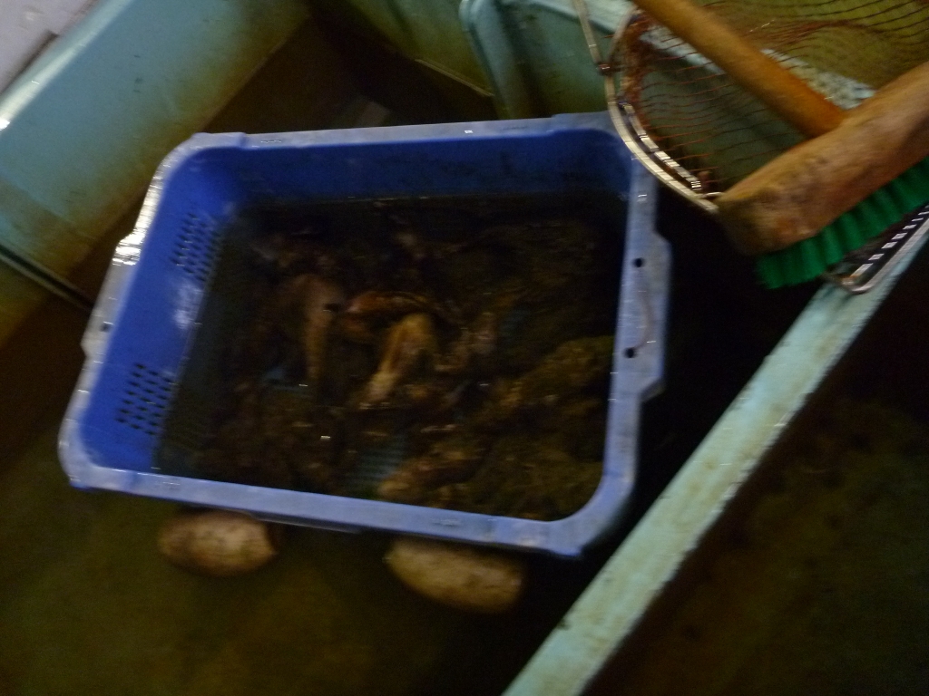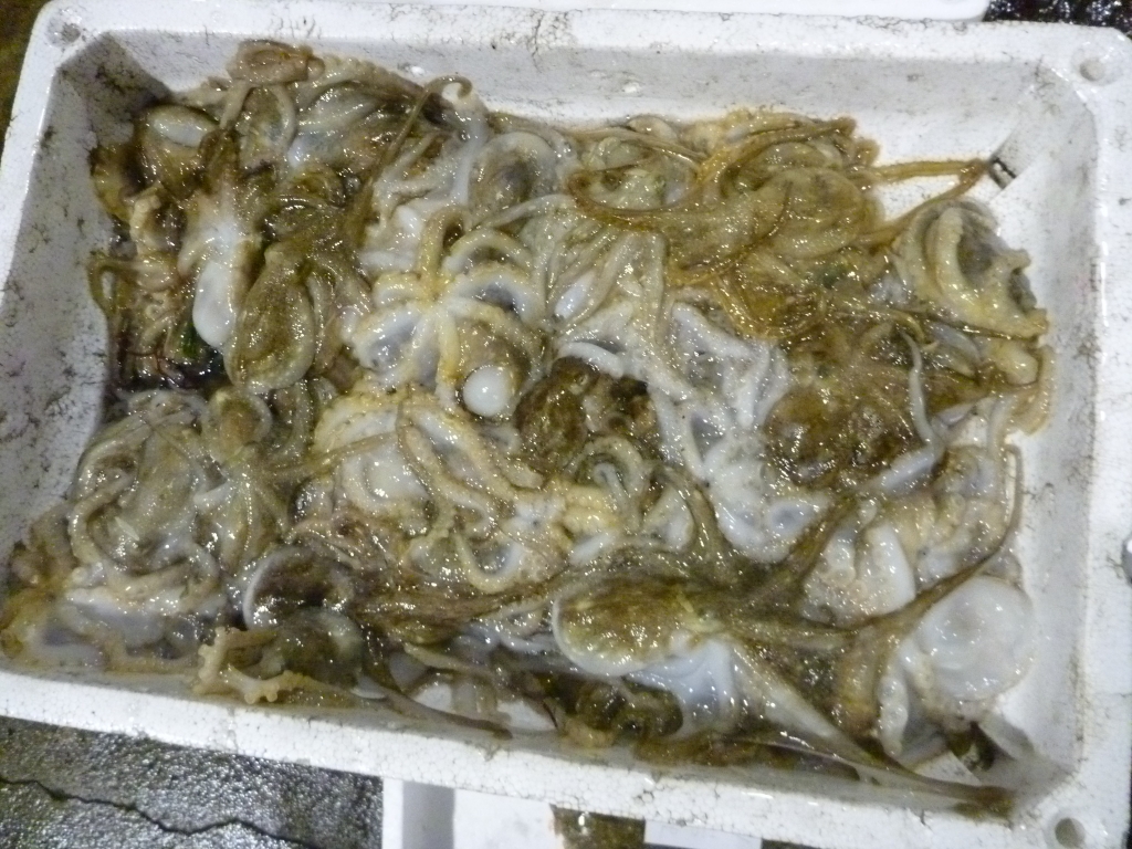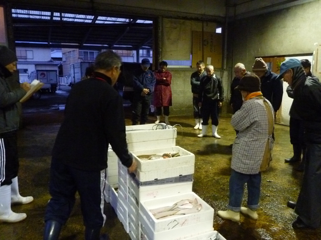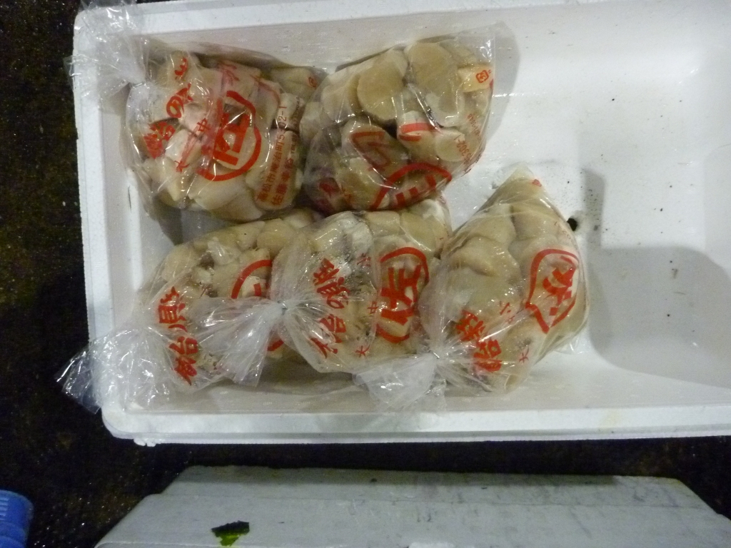 水温低下で、漁獲も悪く、また、出漁する人も寒波襲来で、少なかったようです。
