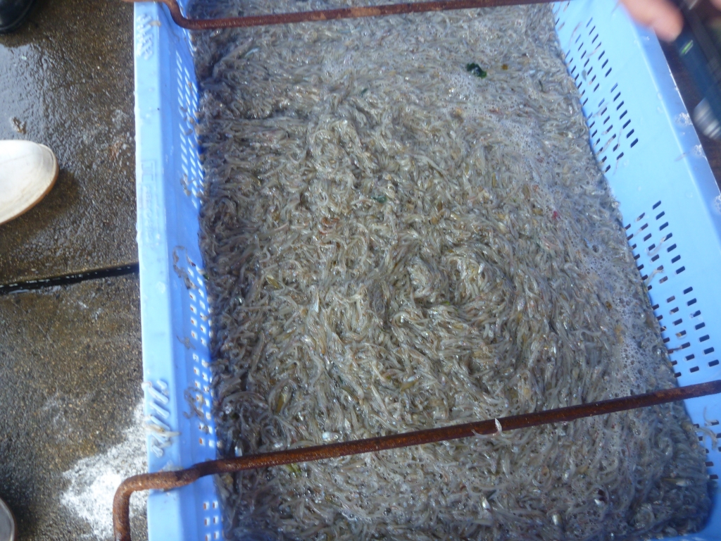 シンコがフルセに交じって漁獲されるようになりましたが、小さすぎるためまだ釜揚げやくぎ煮にできません。