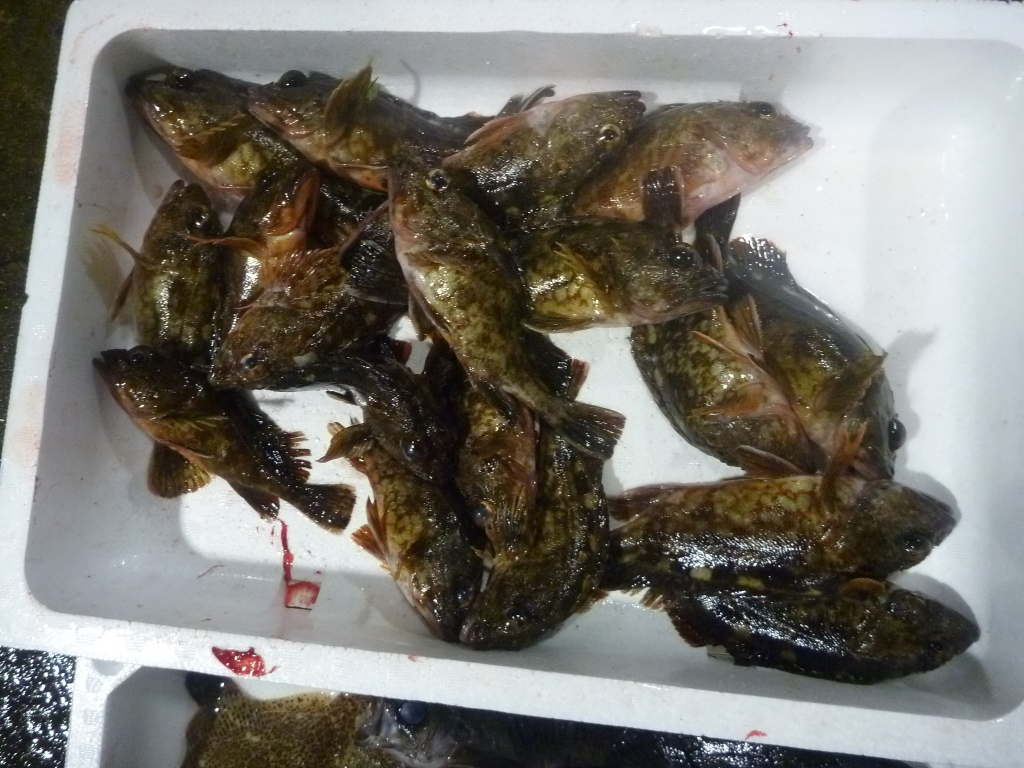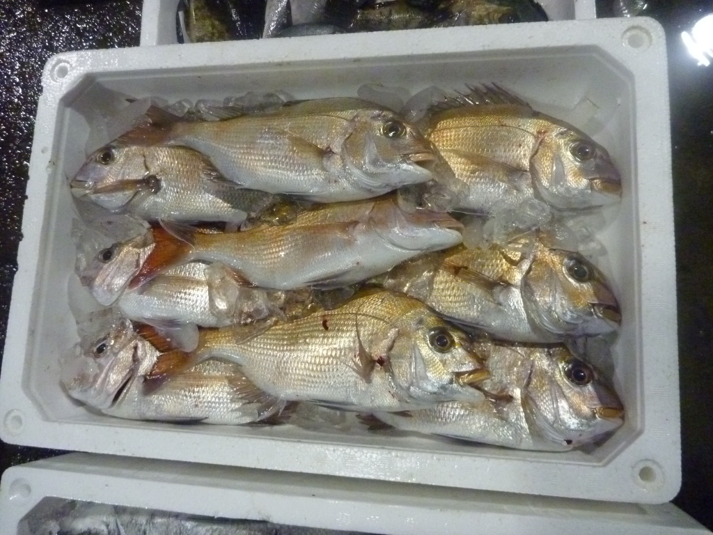 主なものは、マダイ、メイタ、チヌ、ゲタ、ハネ、メバル類、キス、オコゼ、アナゴ、