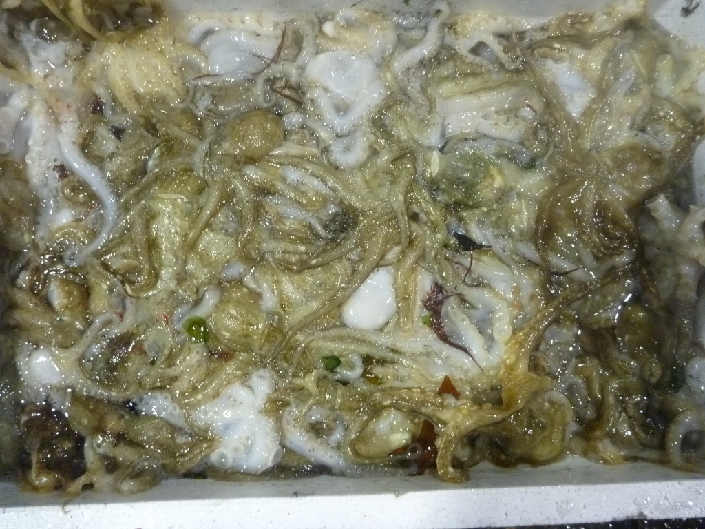 イイダコ、ベイカ、小エビ、ワタリガニ、ニシ貝、タチガイ、ナマコ等です。