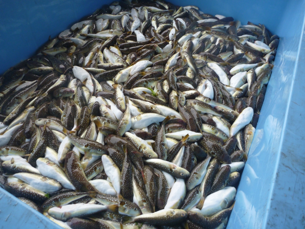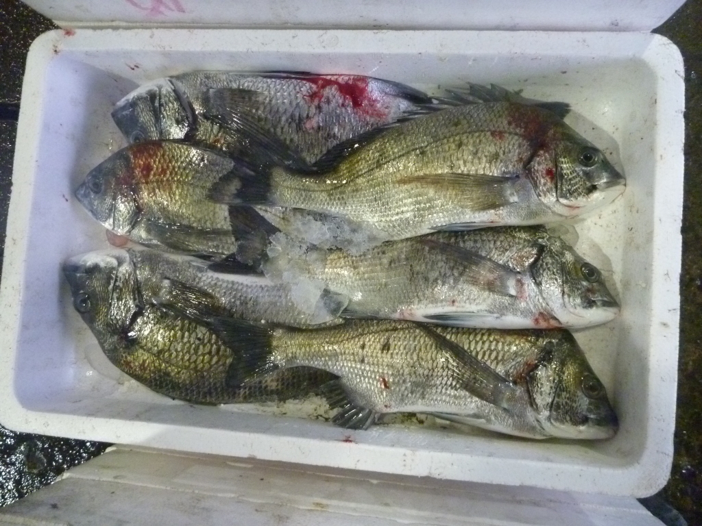 主なものは、マダイ、ハネ、チヌ、メイタ、ゲタ、オコゼ、コノシロ、