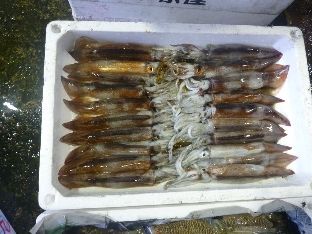 ベイカ、スルメイカ、モンゴウイカ、ミズイカ、小エビ、ワタリガニ、