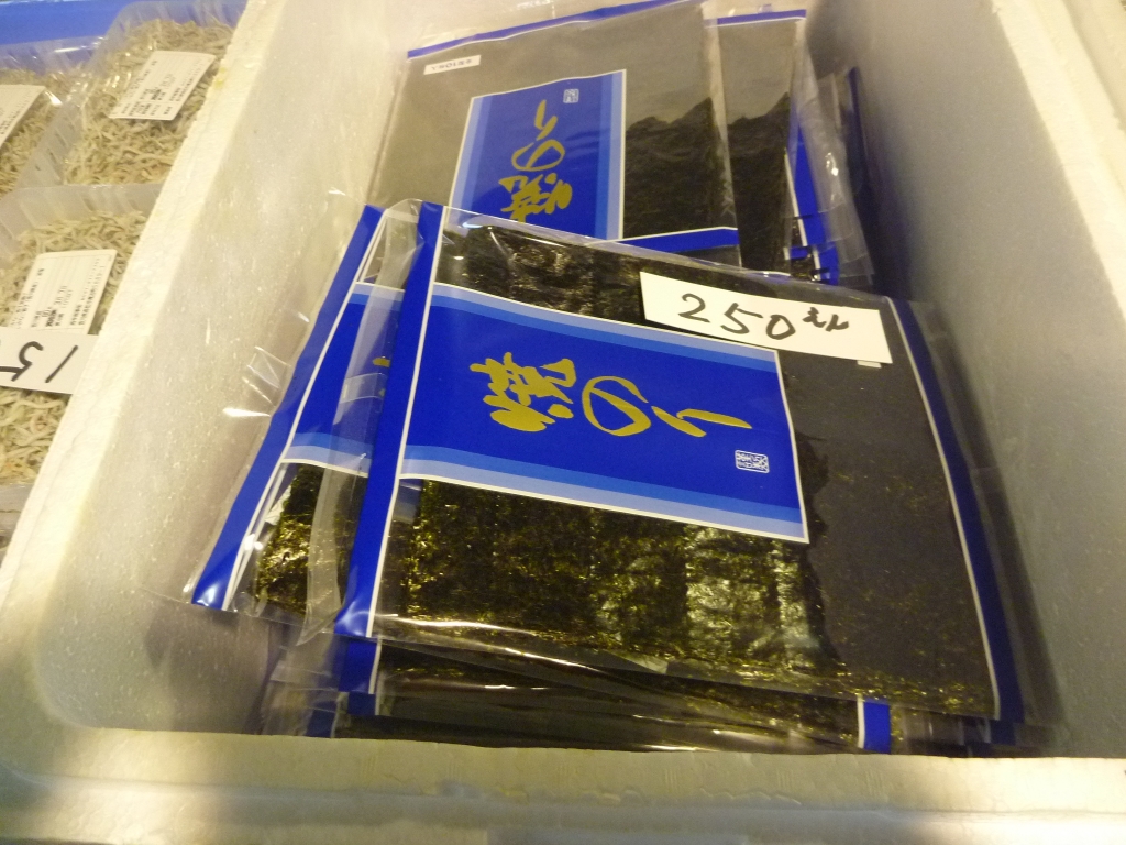 サワラ・イカナゴ・さぬきデンブク等の燻製、くぎ煮(女性部製品)、焼き海苔等です。