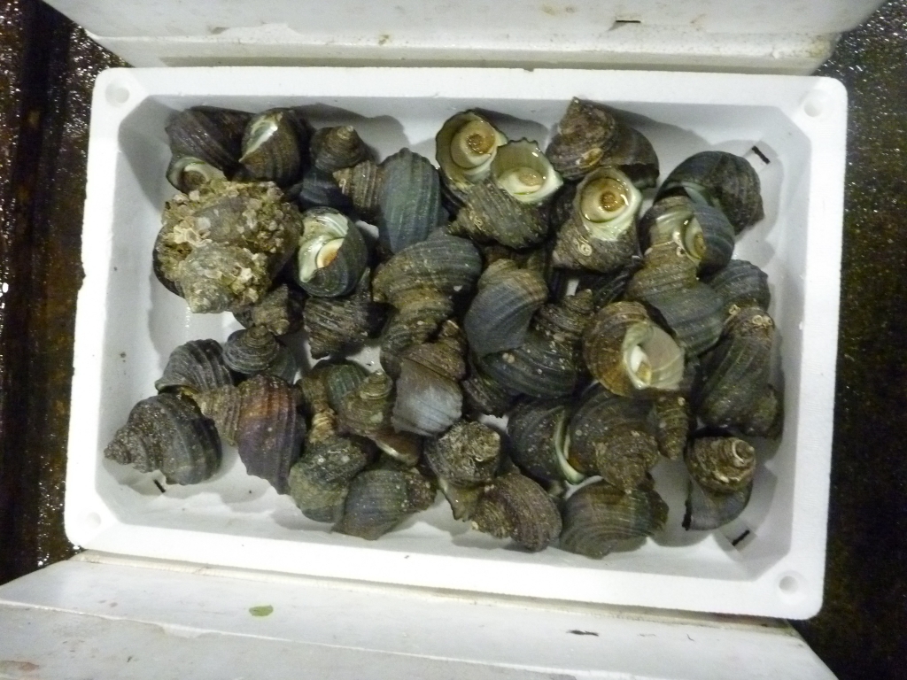 ワタリガニ、サザエ等です。