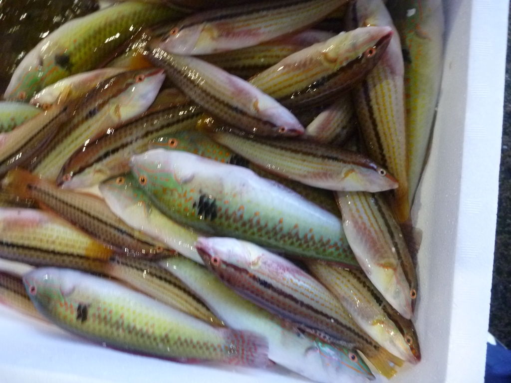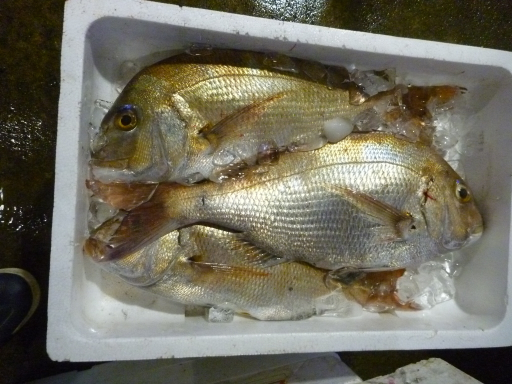 主なものは、マダイ、ゲタ、メイタ、マナガツオ、メバル類、キス、ボラ、