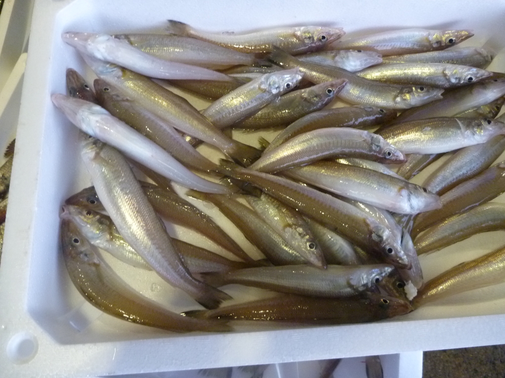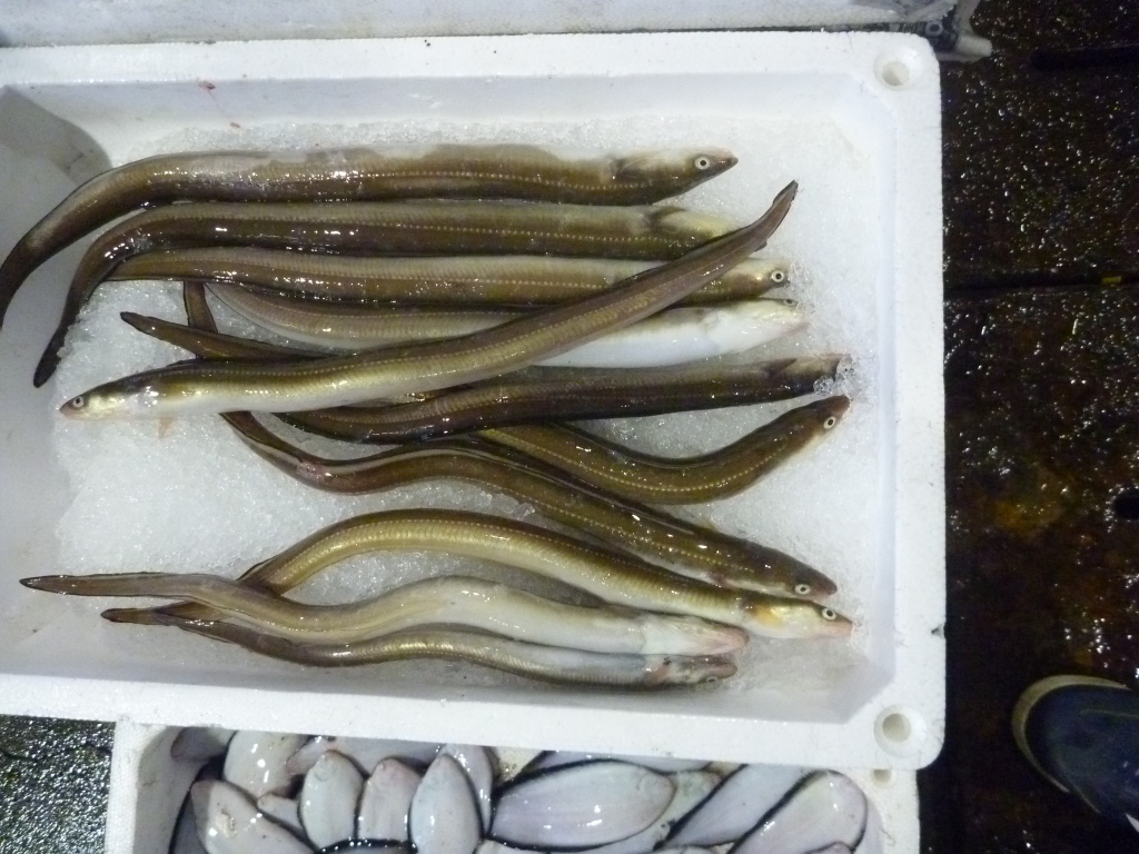 ベロコ、オコゼ、ボラ、ニベ、アカエイ、アナゴ、マダコ、ベイカ、小エビ、