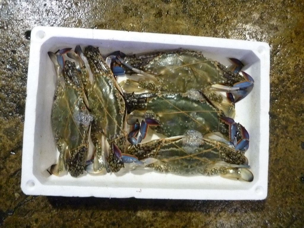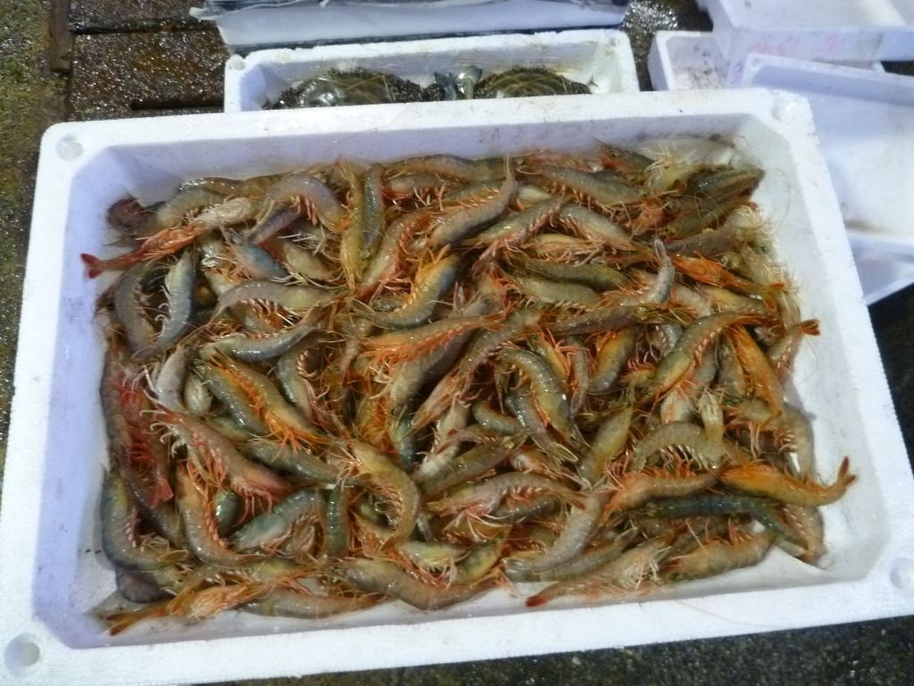 クルマエビ、ワタリガニ、ニシ貝等です。