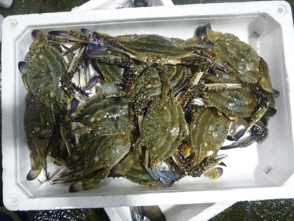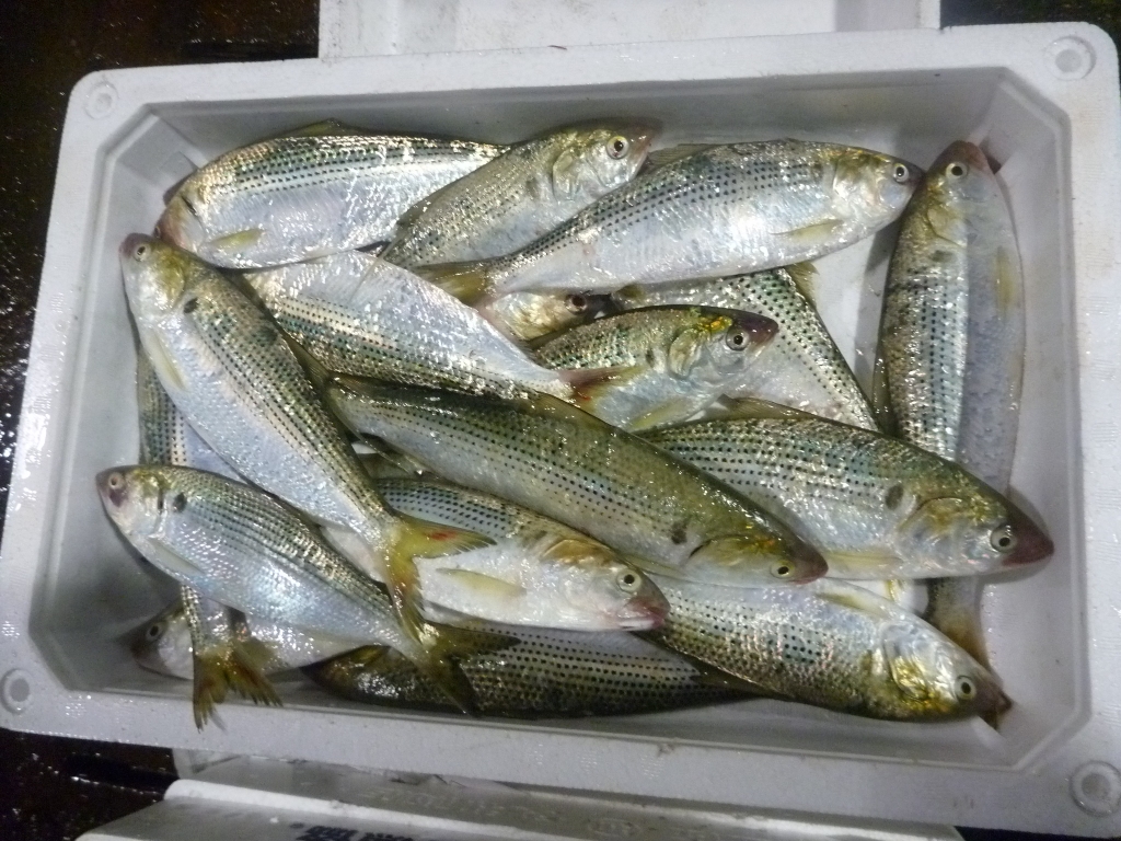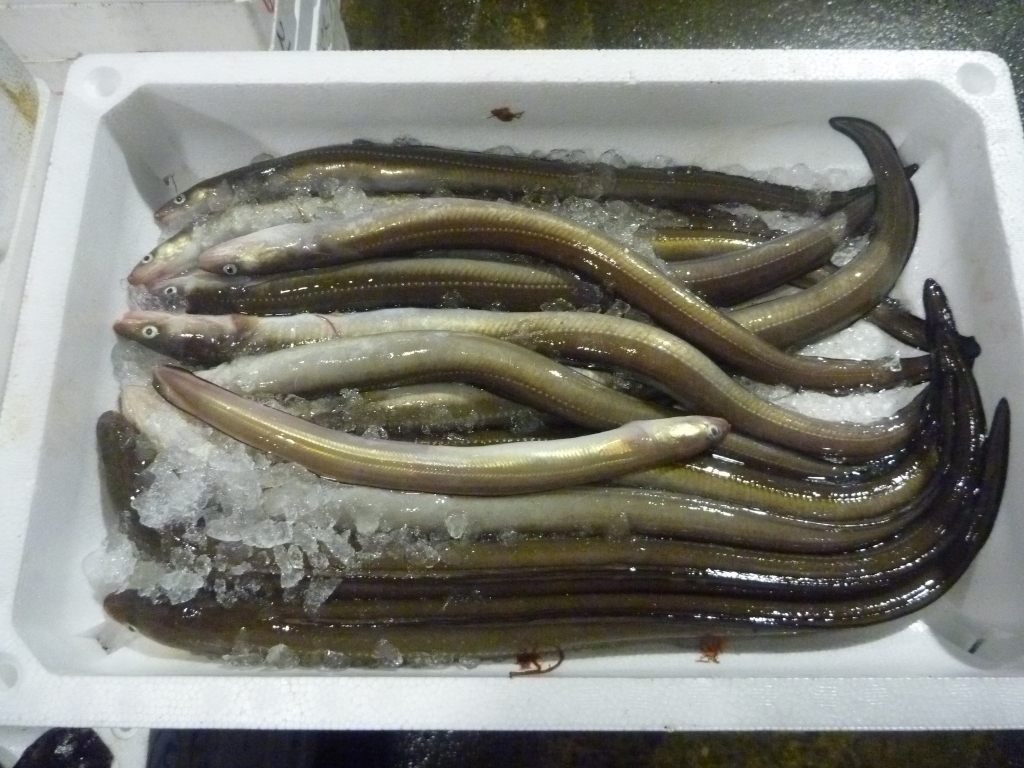 コノシロ、ニベ、小フグ、アカエイ、アナゴ、ハモ、小イカ、イイダコ、小エビ、ワタリガニ等です。