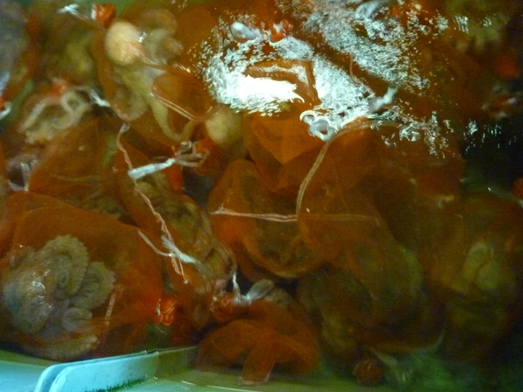 小エビ、ワタリガニ、ニシ貝、タチガイ等です。