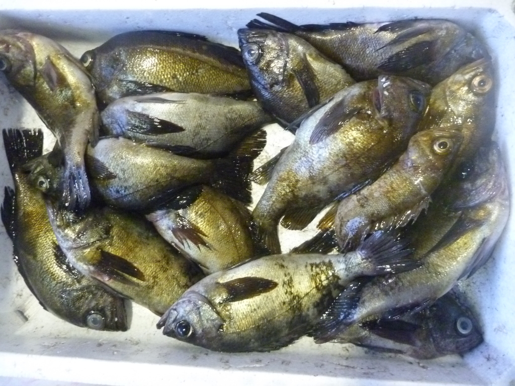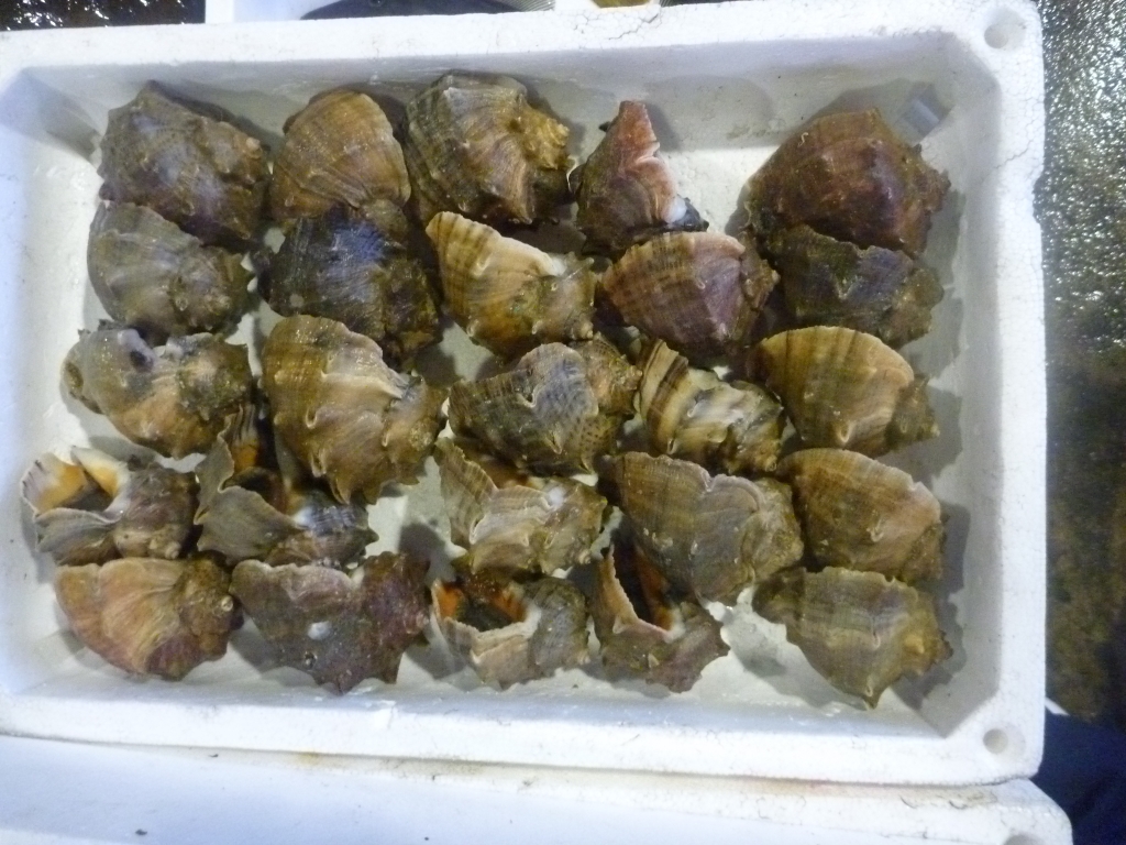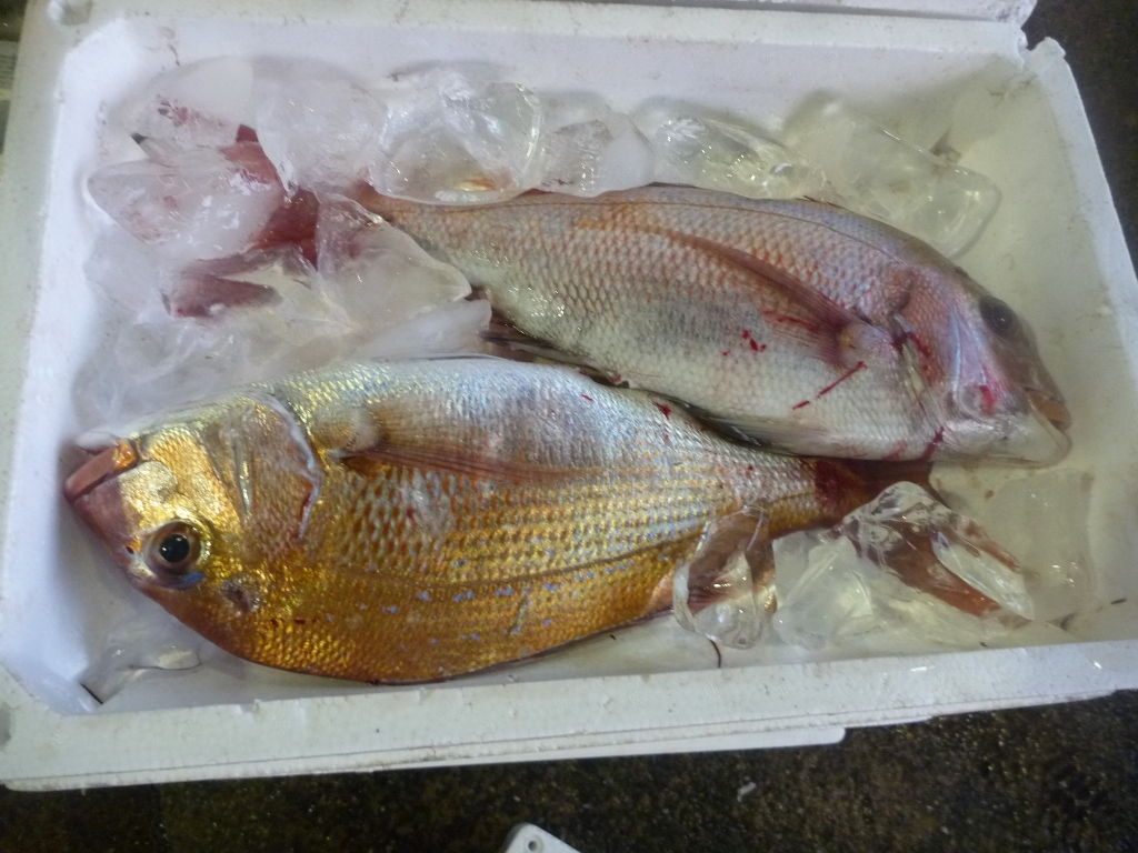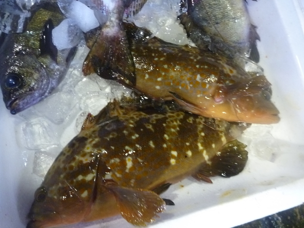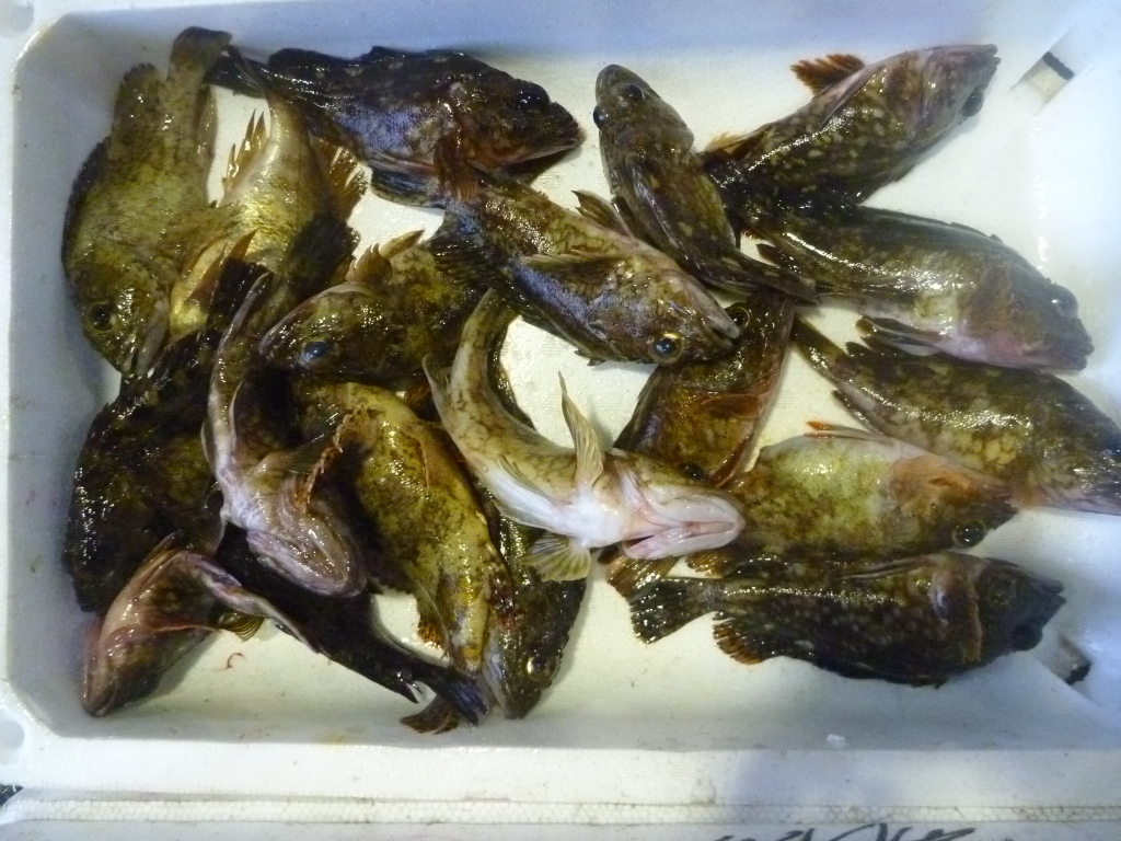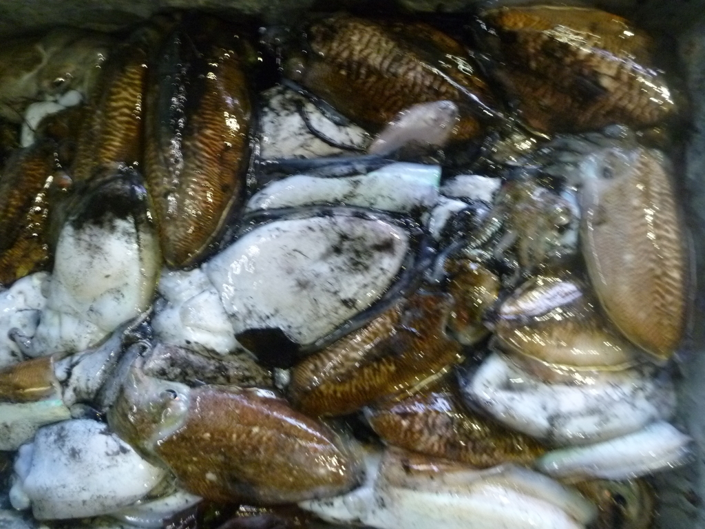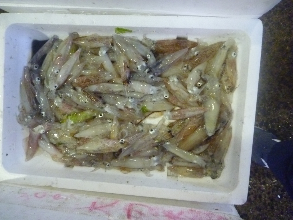 コチゴ、小フグ、アナゴ、ハリイカ、モンゴウイカ、スルメイカ、ベイカ、小エビ、
